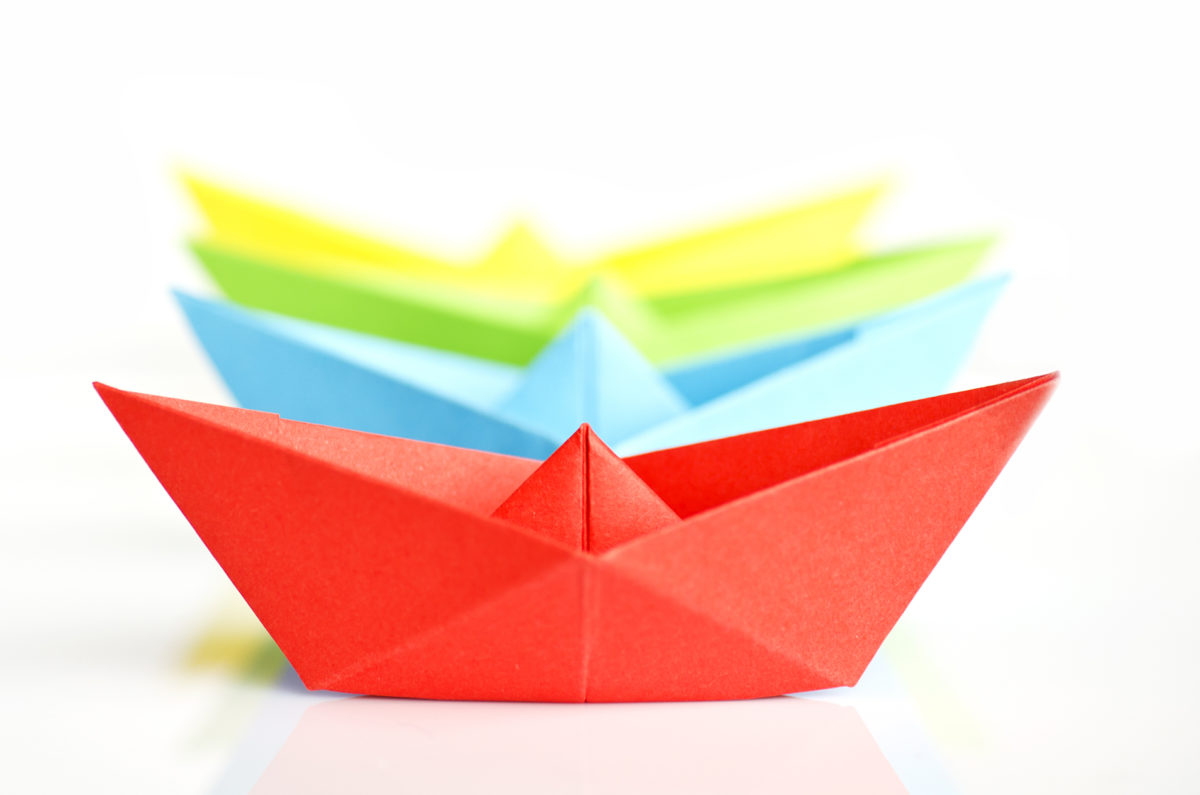 La photographie de bateaux en papier est de Marja Flick-Buijs