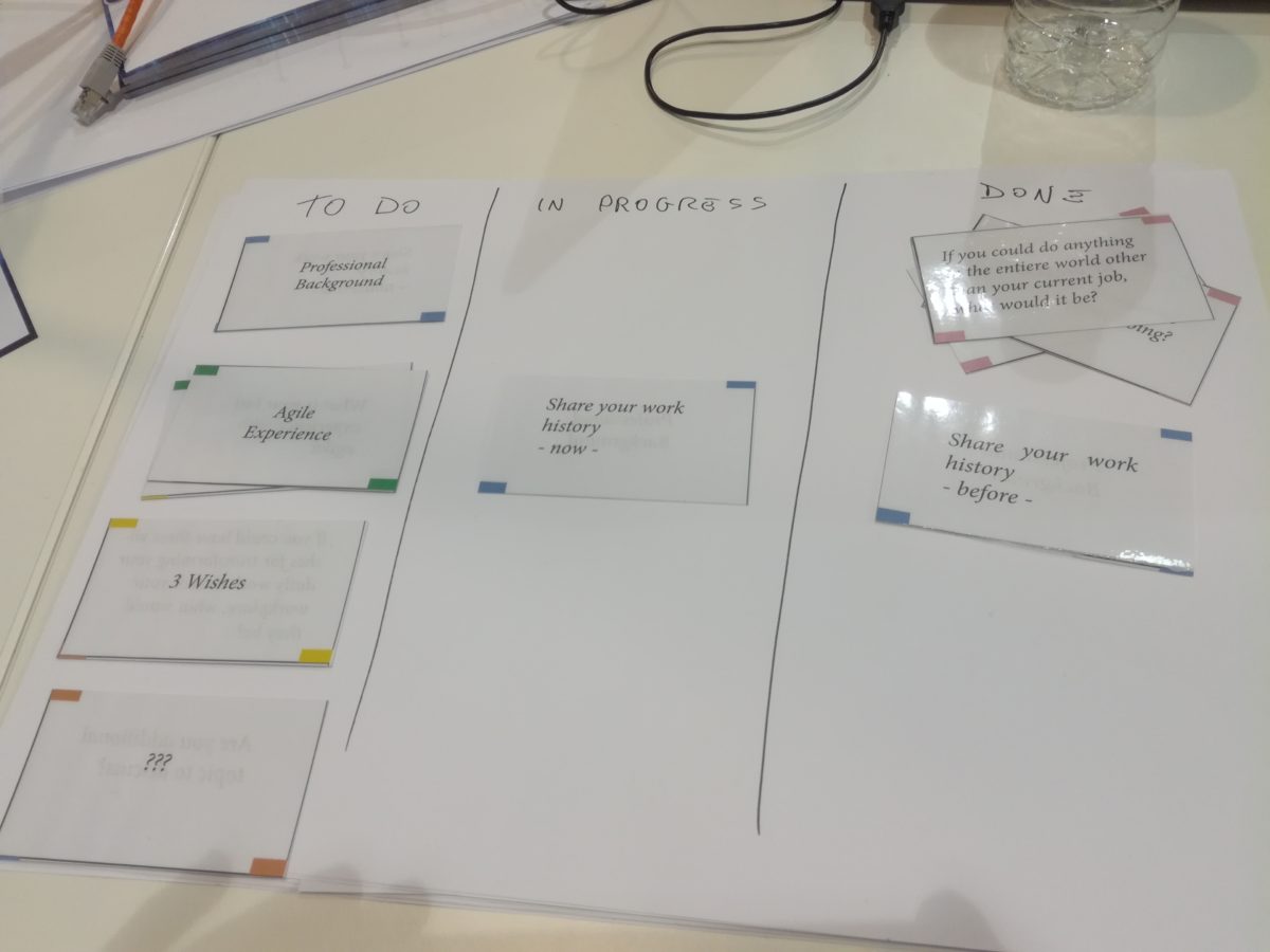 Once the Ice Breaker is Done, you pick the next note in the To Do column and move it to In Progress: Professional background. You will now share your work history that led to your current role.