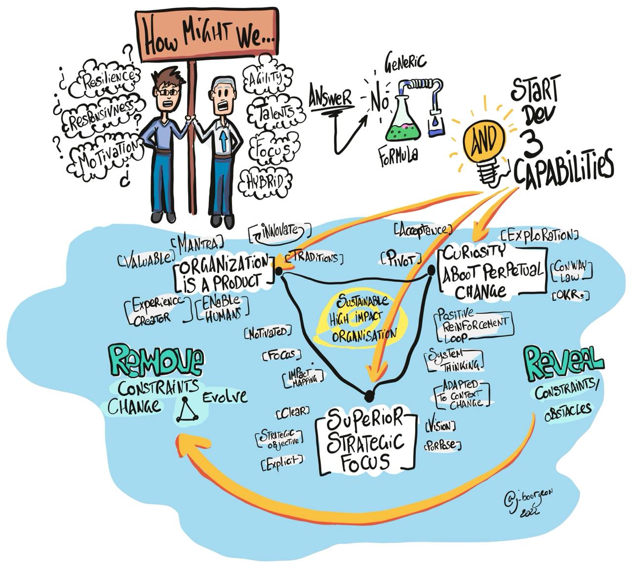 In the long run, the development of the three capabilities creates the condition for your organization to evolve organically, enabling your business to develop and pivot when needed.
