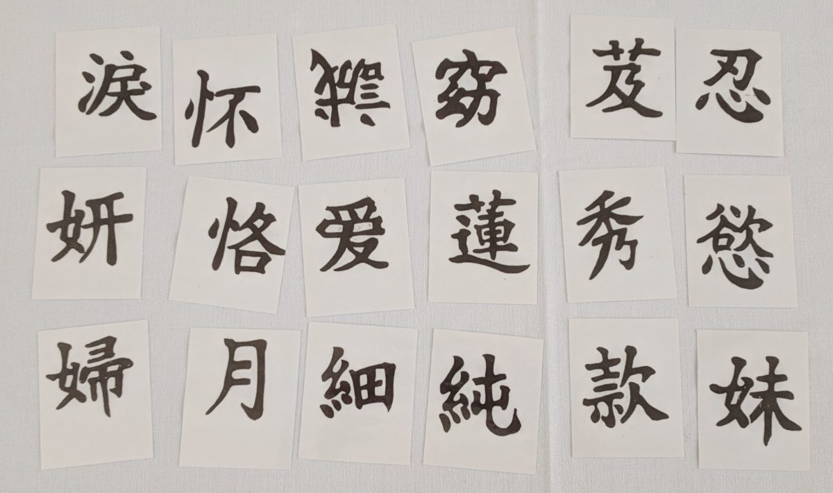 A group of more than eight people is asked to watch a set of cards figuring Kanjis for 1 minute. The facilitator splits the group in half.